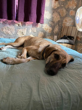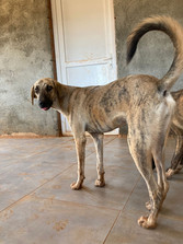 Monica was of the 12 puppies found in a box and has grown into such a beautiful girl! She has the lovely morning habit of following any humans around, however busy we are, and nicely pawing us for attention.